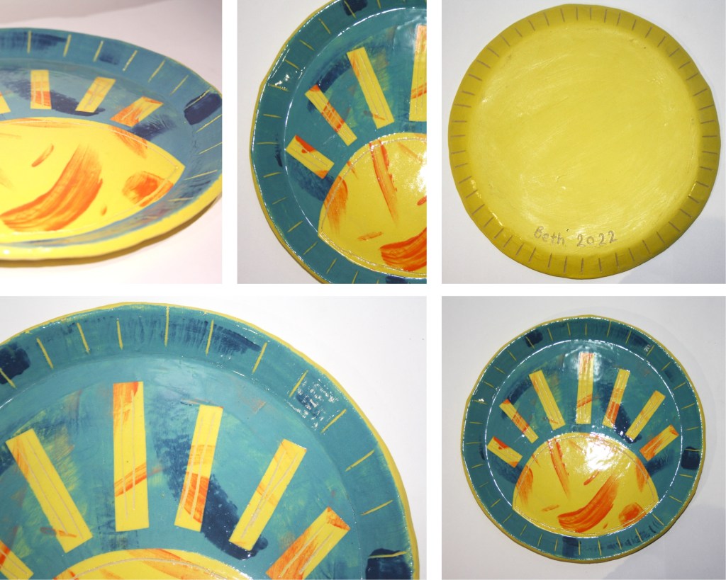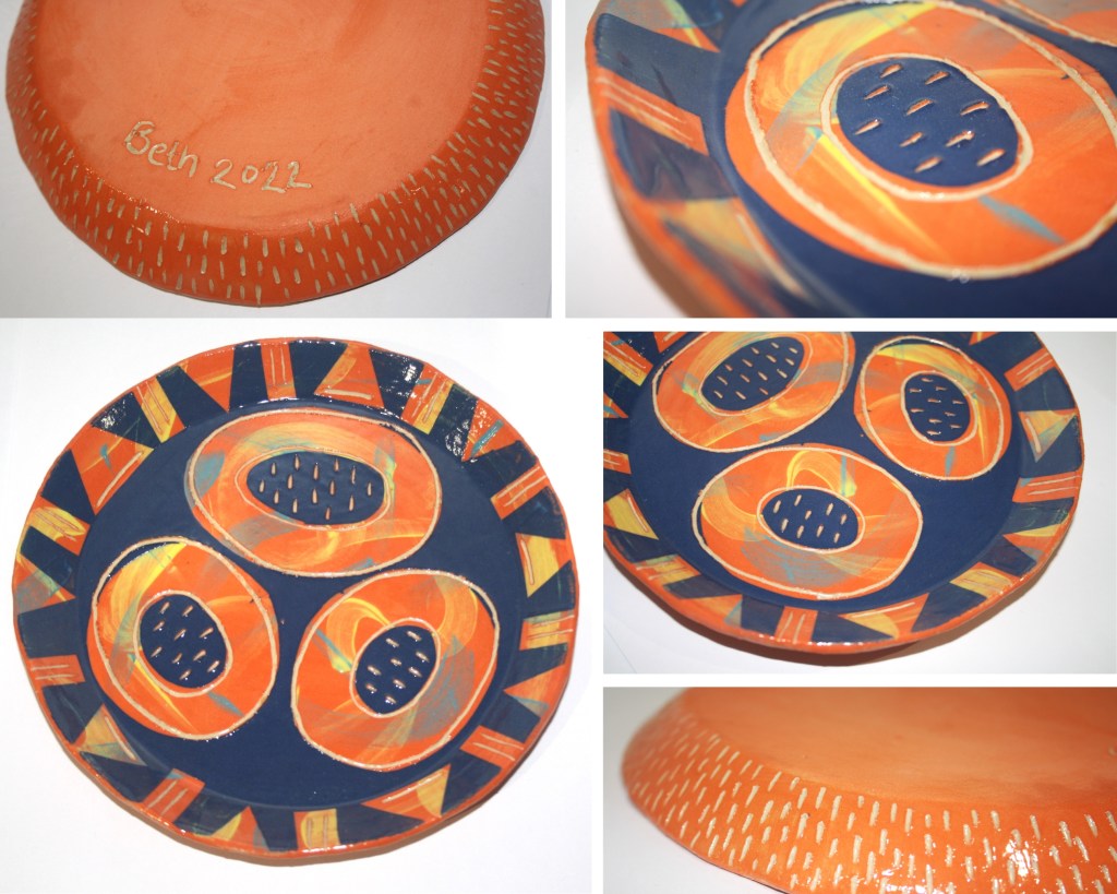 This plate is much less abstract than my other pieces and I really enjoyed using the beautiful bright yellow and blue to make such a colourful and lively piece.