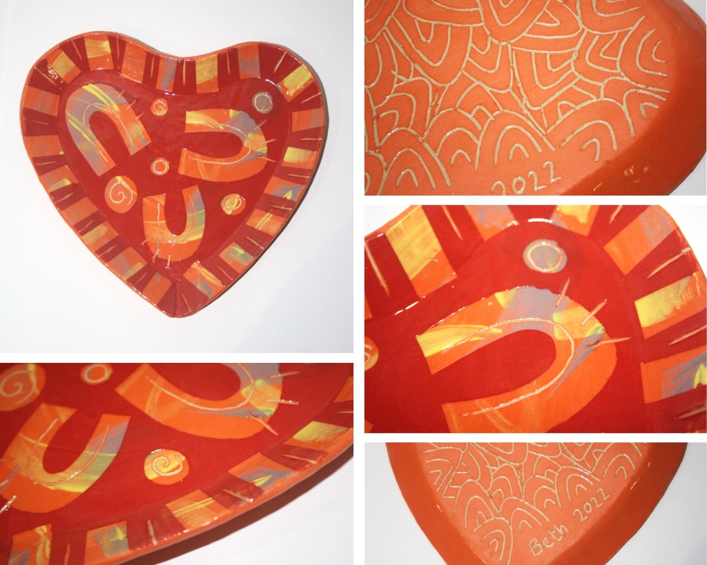 I enjoyed experimenting with a heart-shaped mould for this project, using horseshoe shapes as a nod to love, marriage and romance. I do like the colour combination on this piece, however, I prefer the more contrasting colour combinations on the previous plates.