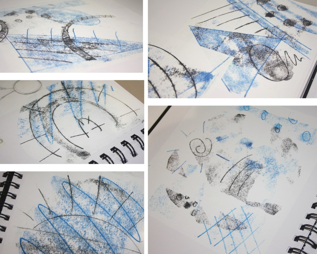 I started out by using some lino prints I had done at a workshop at the Cornwall College as inspiration for the abstract designs I would try to emulate.